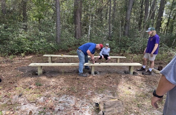 Fall Fellowship 2025 was no joke. Scouts young and old, worked together to fix some benches in the OA arena, added more benches to that same OA arena, cut down dead trees and hauled off the wood, prettied up some of the fencing at the main campfire arena, blew off leaves and sticks from building roofs, cleaned bathrooms at Bowers and McNeill, installed new shower curtains at McNeill for Cub campers, painted signs in the OA arena, pulled weeds from the volleyball court, trimmed trees and bushes at the camp memorial site and in the main parking lot, mowed areas around camp, and oh how can we not forget about power washing buildings. Whew, good thing there was good food to eat from the OA's #1 rated cook crew. On top of all that, the weather was perfect and lots of friendships were made.